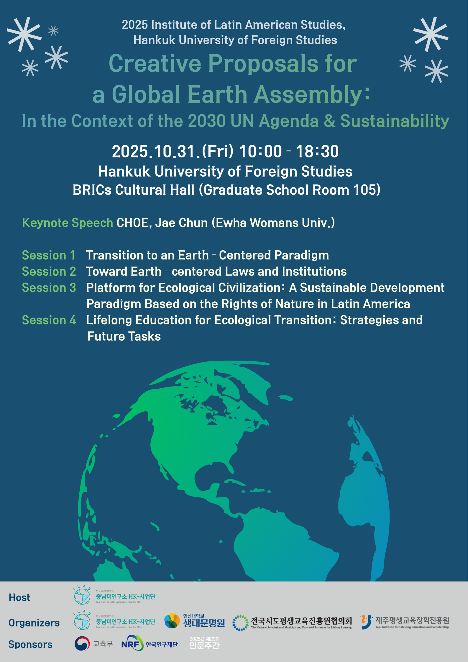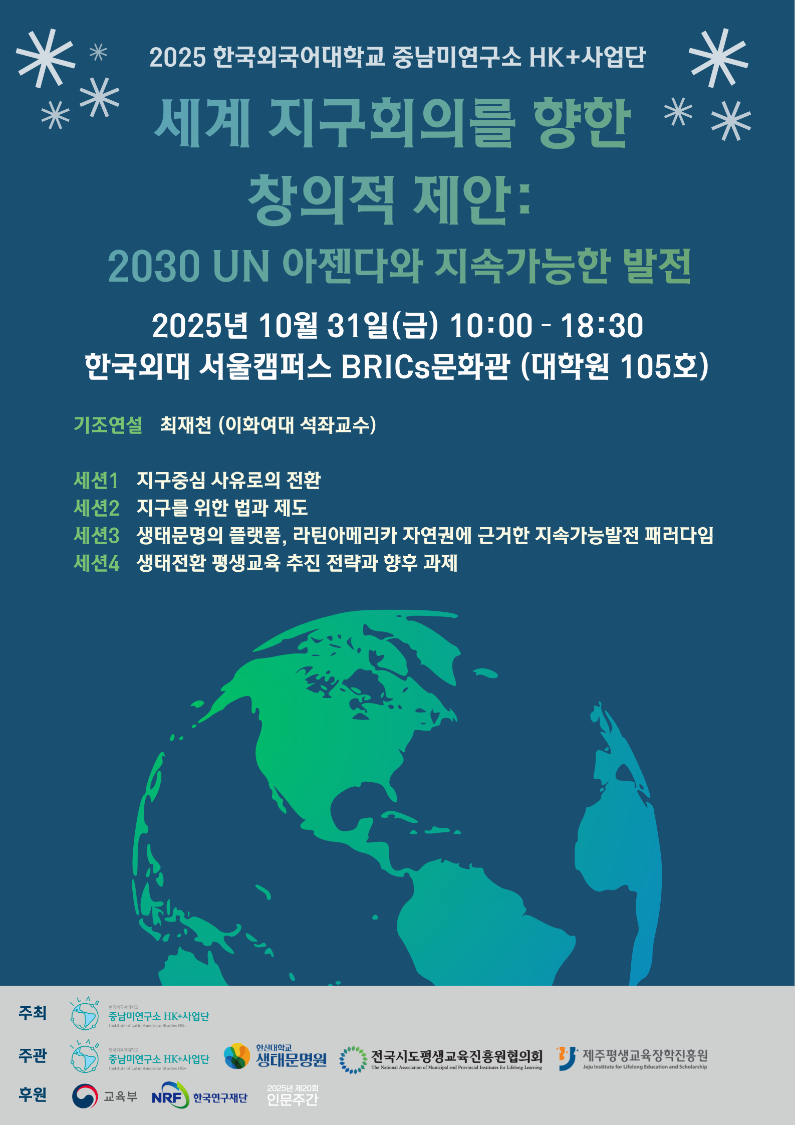 한국외국어대학교 중남미연구소는 오는 10월 31일(금) 한신대 생태문명원, 전국시도평생교육진흥원협의회, 그리고 제주평생교육장학진흥원과 공동 주관으로 학술대회를 주최합니다.